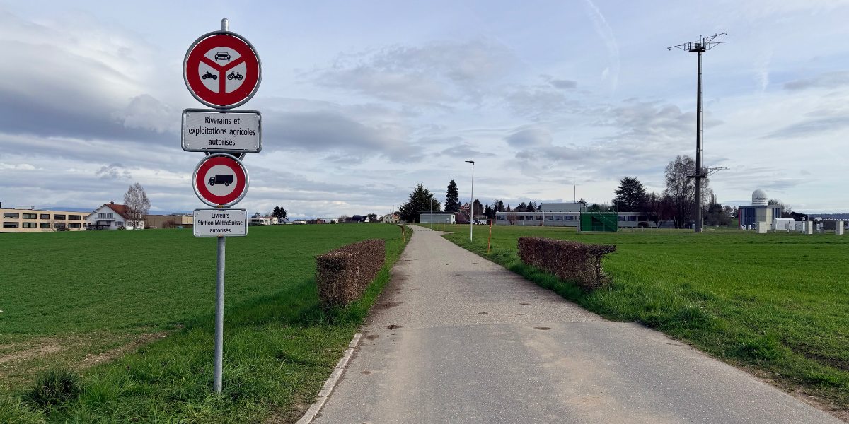 Afin d’assurer la sécurité des usagères et usagers, notamment piétons et cyclistes, des mesures d’accompagnement sont actuellement à l’étude pour le chemin de l’Aérologie. Ce projet est mené en concertation avec la Confédération, propriétaire des terrains bordant cet axe.